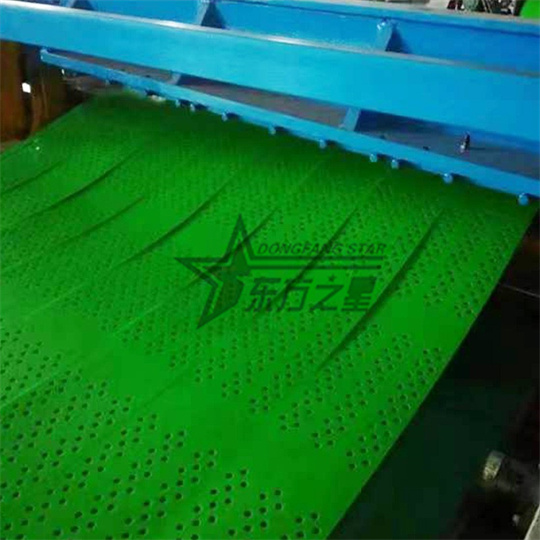 L'attrezzatura per l'estrusione di geogriglie viene utilizzata per produrre geocelle. Il primo passo di questo prodotto è produrre fogli, quindi i fogli vengono tagliati in linea e quindi i fogli di plastica vengono collegati saldatura ad ultrasuoni e altri metodi