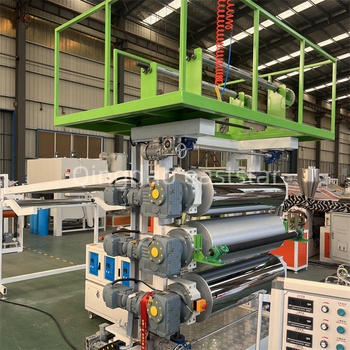 Lo stampo è dotato di un sistema di riscaldamento a 7 zone e la superficie del canale di flusso è cromata e lucidata a specchio. La calandra a tre rulli è dotata di rulli a specchio ∮400×1200 mm, con una durezza superficiale del rullo di HRC58-62 e uno spessore della cromatura di 0,08 mm. Uno speciale design multicanale garantisce una temperatura uniforme. Queste configurazioni professionali garantiscono che la membrana impermeabile prodotta dalla linea di produzione abbia uno spessore uniforme e una struttura interna densa.