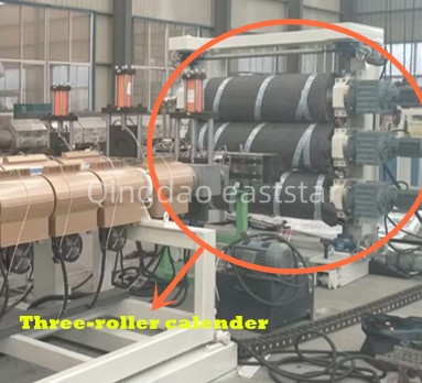 Il sistema di stampi delLinea di produzione di lastre per coestrusione multistrato in ABSadotta un design del canale di flusso del tipo a gruccia, con una larghezza dello stampo di 2200 mm e dotato di un distributore di precisione per garantire una distribuzione uniforme del materiale in ogni strato. La calandra a tre rulli è dotata di rulli con finitura a specchio Φ450×2500 mm, con una durezza superficiale del rullo di HRC58-62 e uno spessore della cromatura di 0,08 mm. Uno speciale design multicanale garantisce una temperatura uniforme. Il sistema di controllo della temperatura dei rulli utilizza acqua purificata addolcita come mezzo, con una precisione di controllo della temperatura di ±1℃, ed è dotato di tre pompe per l'acqua calda da 2,2KW e tre set di riscaldatori da 12KW per fornire un ambiente a temperatura precisa per la formazione della lamiera.