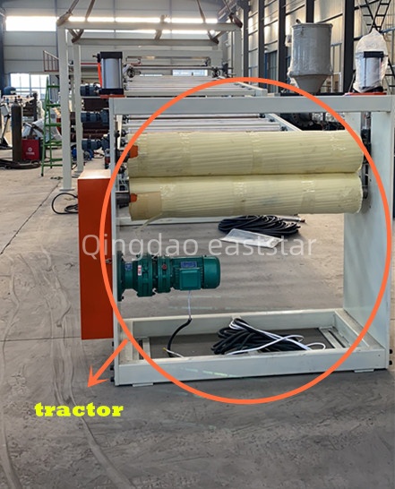 L'interolinea di produzione di coestrusione multistratocomprende inoltre due cambiafiltri idraulici, un supporto di raffreddamento da 8 metri e un sistema di taglio a trazione. Il cambiafiltro utilizza componenti idraulici taiwanesi, consentendo il cambio del filtro senza fermare la macchina. La macchina di trazione è dotata di rulli in gomma nitrilica da Φ240×2500 mm, azionati da un motore da 2,2 kW, che consentono una regolazione della velocità sincrona con i tre rulli. Il sistema di controllo elettrico dell'attrezzatura per la coestrusione delle lastre in ABS utilizza un PLC e un touch screen Siemens della serie S7, combinati con un convertitore di frequenza ABB, per garantire il funzionamento coordinato dell'intera linea.