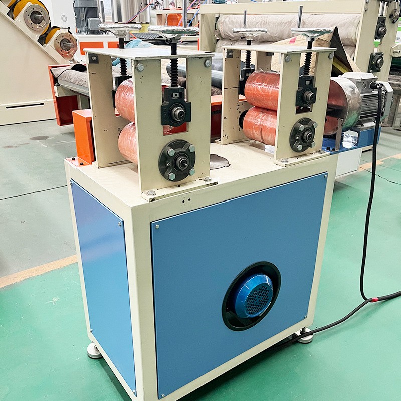 La macchina per estrusione di strisce per bordi di sacchetti in PE comprende un compressore a vite singola - stampo della testa della macchina - magazzino di formatura sotto vuoto - trattore di trazione - avvolgimento