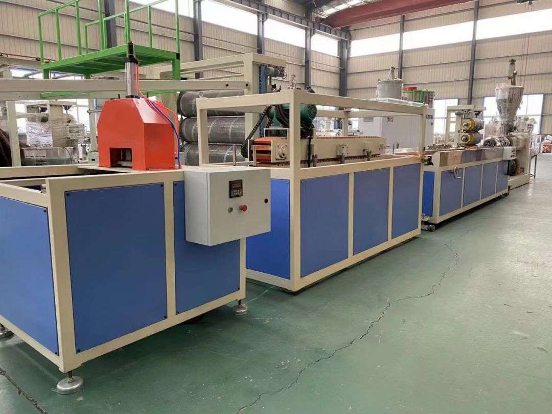 La linea di produzione dei profili utilizza estrusori bivite conici della serie SJSZ-65/132, piattaforme di formatura sottovuoto in acciaio inossidabile, trattori cingolati, macchine integrate per il taglio automatico e scaffalature di scarico ribaltabili. La piattaforma di modellatura è dotata di una pompa per vuoto ad alta pressione e di una pompa dell'acqua, regolabili quadridimensionalmente. Il trattore viene bloccato pneumaticamente. La macchina da taglio automatica a lunghezza fissa utilizza un interruttore di corsa per tagliare a una lunghezza fissa. La scaffalatura impilabile è lunga 6 metri, realizzata in acciaio inossidabile e ribaltata pneumaticamente.