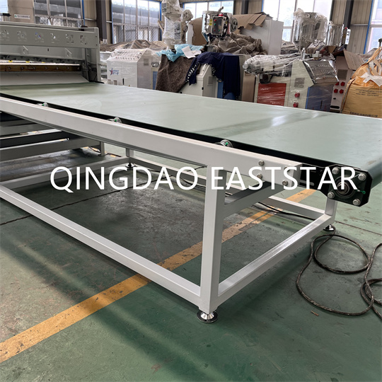 Attrezzatura per la tavola della Grande Muraglia in materiale composito legno-plastica in PVCattrezzatura per estrusore di pannelli di illuminazione in PVC Attrezzatura per estrusore per pannelli luminosi in PVC: l'attrezzatura è costituita principalmente da un estrusore bivite, uno stampo per piastre, una calandra a tre rulli, una staffa di raffreddamento, una macchina per la trazione dei rulli in gomma, una macchina da taglio e un dispositivo di trasporto.