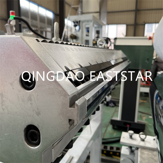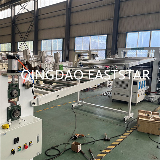 Attrezzatura per estrusore per pannelli luminosi in PVC: l'attrezzatura è costituita principalmente da un estrusore bivite, uno stampo per piastre, una calandra a tre rulli, una staffa di raffreddamento,